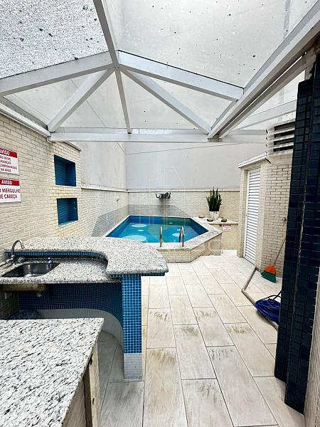 Empreendimento localizado na quadra do mar, oferece área de lazer com churrasqueira e piscina