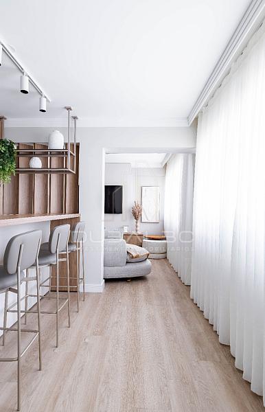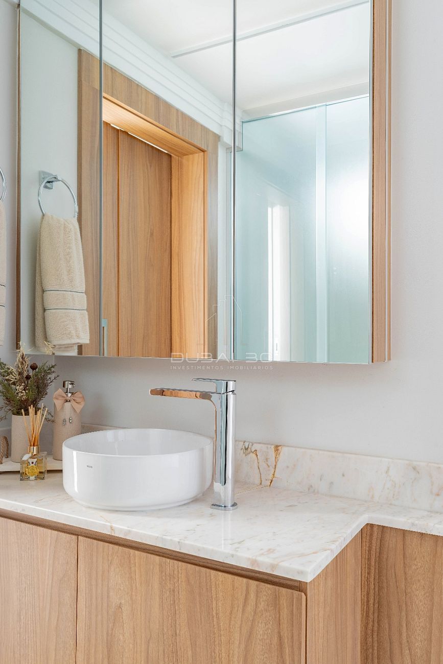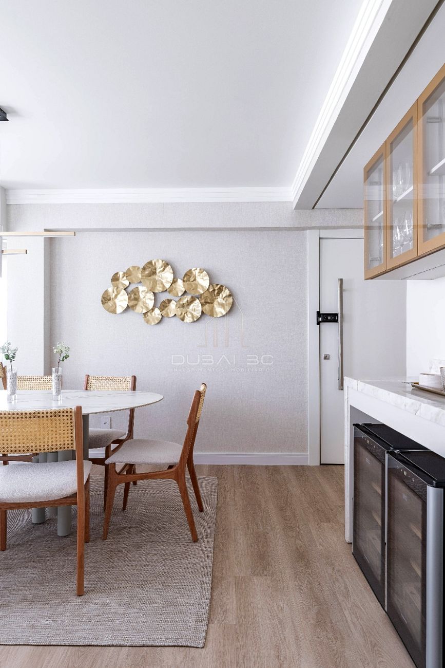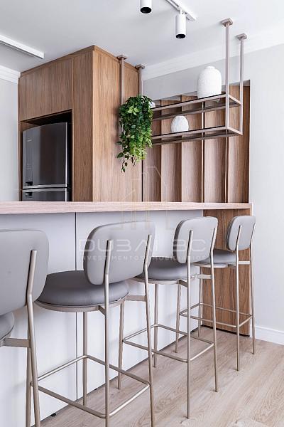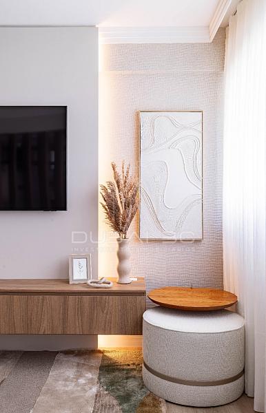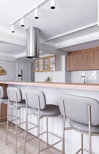 Com um projeto de interiores finamente executado, o imóvel de 158m² privativos destaca-se pela fluidez dos ambientes e acabamentos de altíssima qualidade.