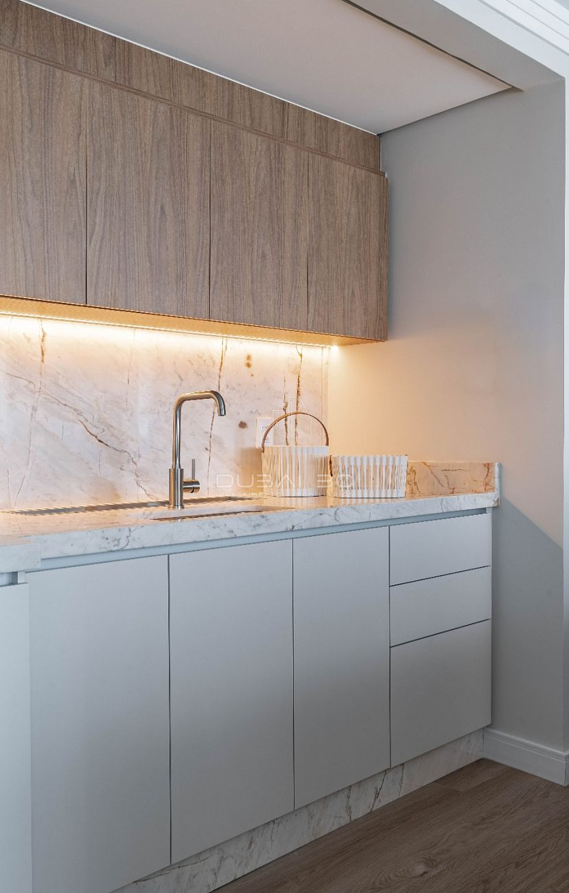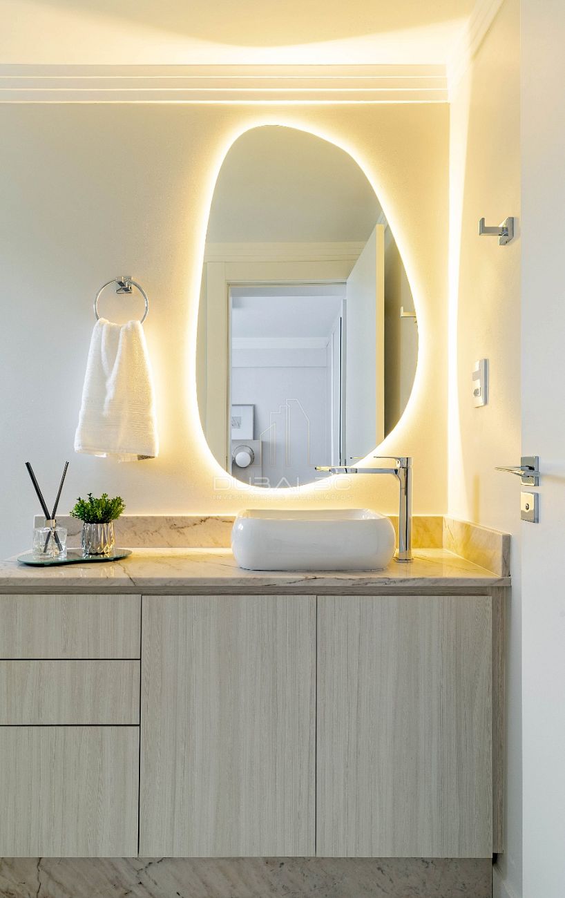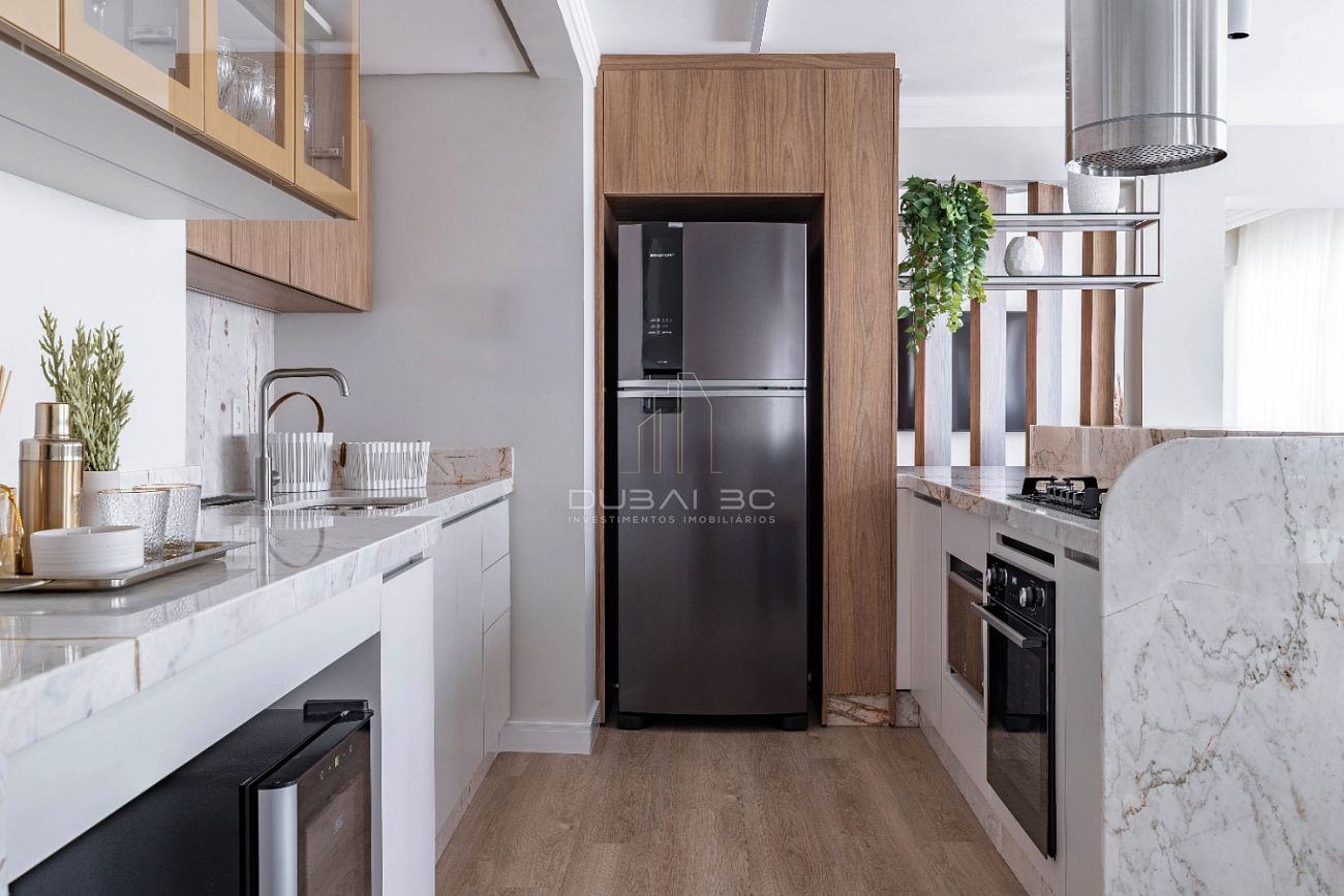 Com um projeto de interiores finamente executado, o imóvel de 158m² privativos destaca-se pela fluidez dos ambientes e acabamentos de altíssima qualidade.