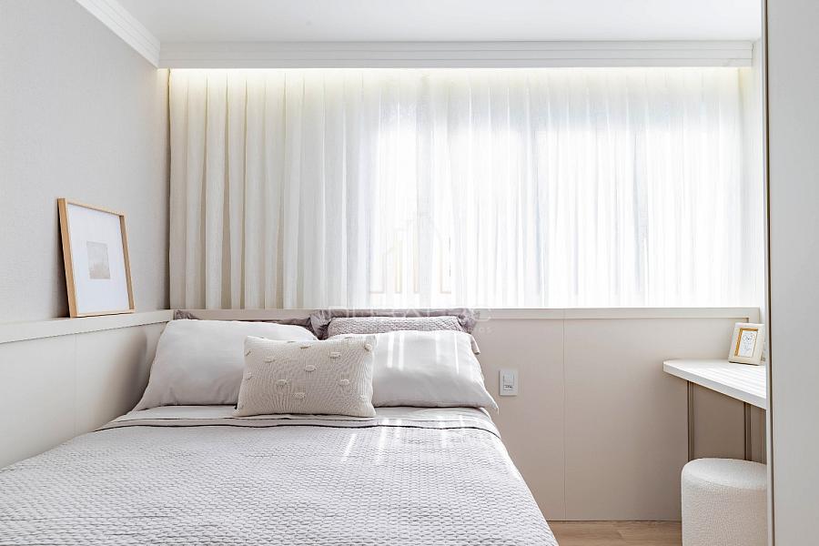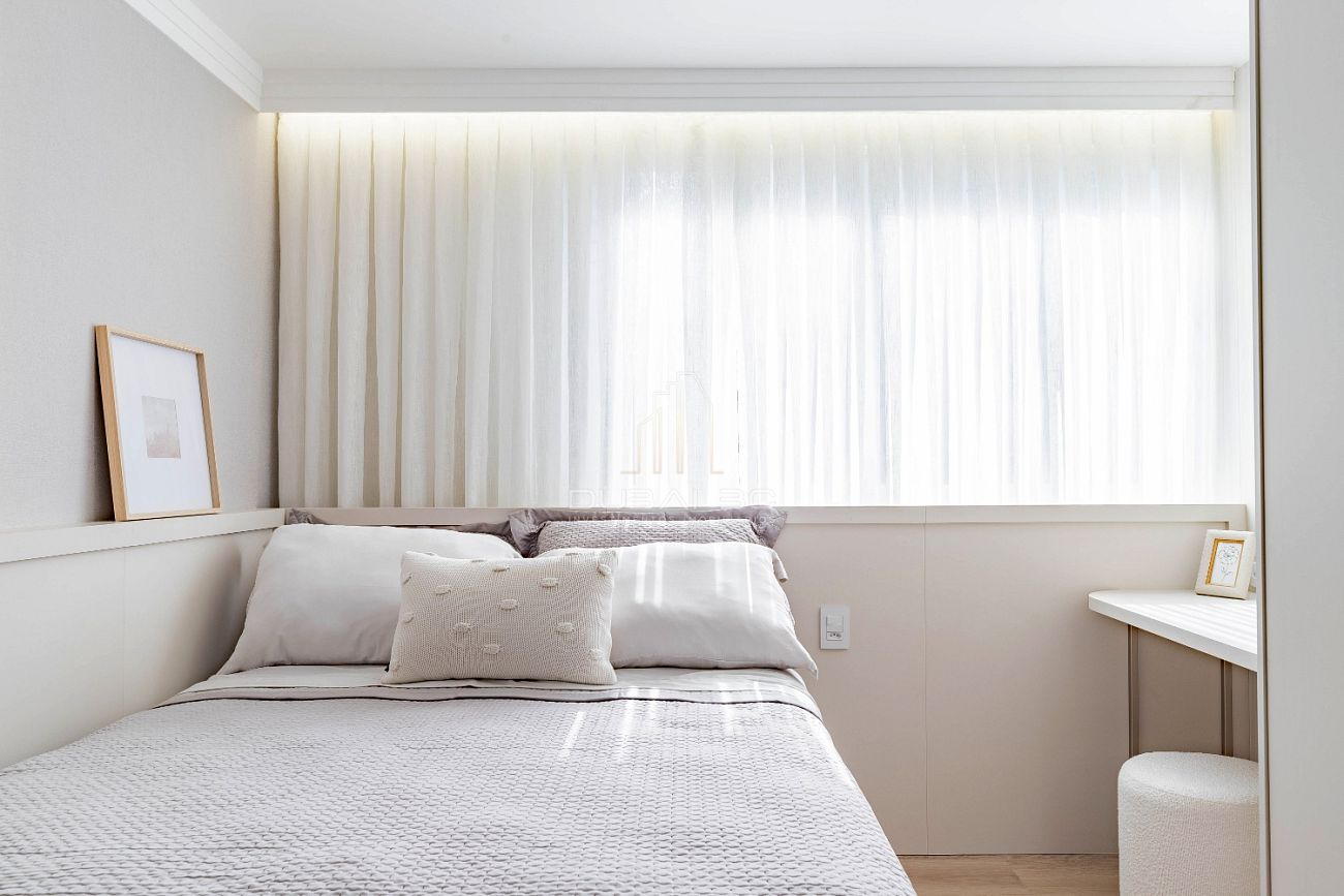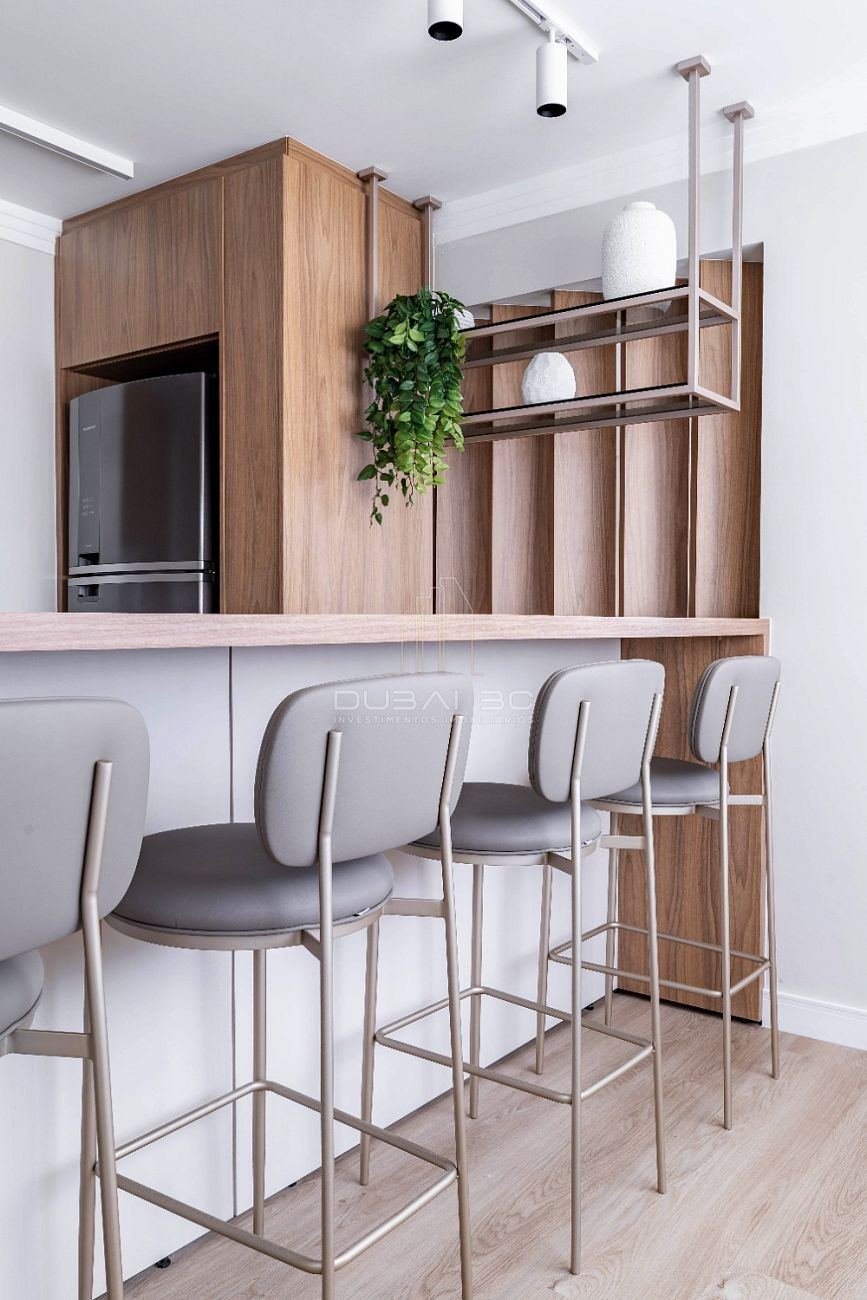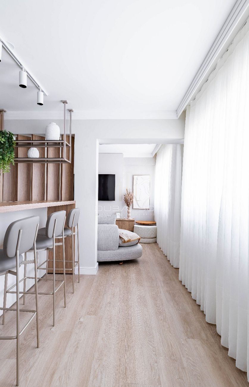 • Living Expandido: Paredes removidas para criar um ambiente social amplo, integrado à Cozinha Americana equipada.