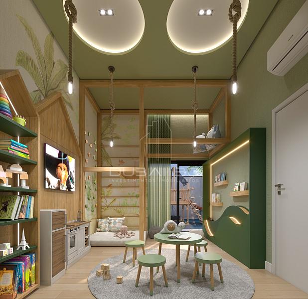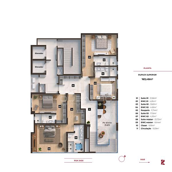 Duplex / Pé direito duplo / 4 suítes / 5 banheiros / 4 vagas / 350m² privativos